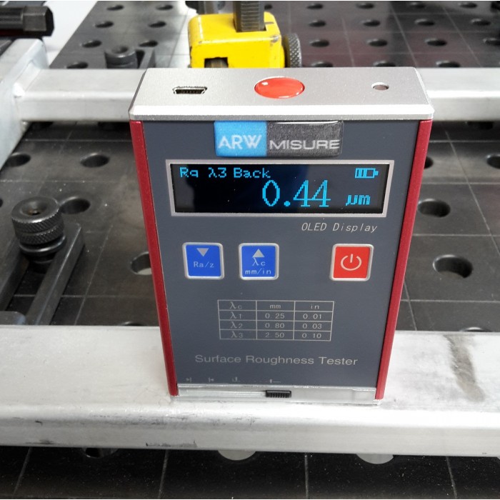 This portable roughness tester represents the most compact and simple solution to use for measuring the degree of roughness of a surface. Thanks to the translation system and the built-in feeler, it allows the instrument to be supported by single hand with a minimum encumbrance. Its measuring range allows to fulfill most of the requirements in the field of mechanical processing on metallic and non-metallic materials (turning, milling, grinding, etc ...). It also allows you to evaluate the roughness also on other types of materials as long as they have a sufficient degree of hardness, for example plastic, glass, etc ...