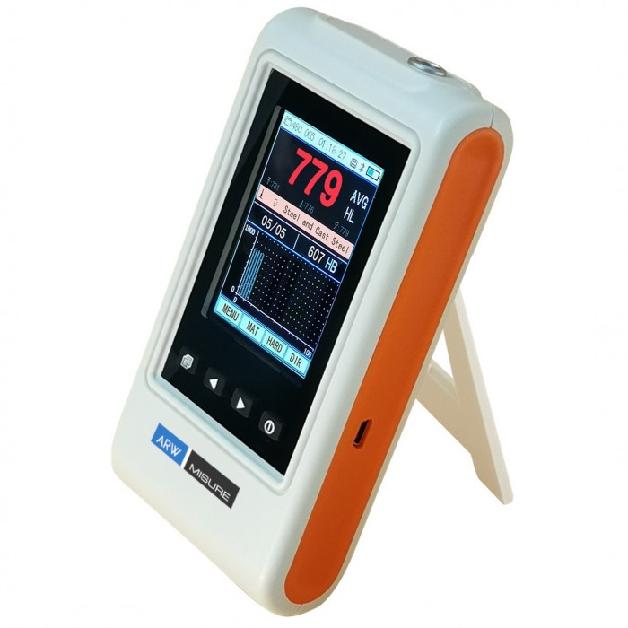 The ARW-1000 Durometer is a portable and digital instrument equipped with a Leeb Test measuring system to easily and quickly detect the hardness of any metallic material. The meter is equipped with a large TFT color display with numerous functions and parameters and is supplied with a standard “D” type impact probe.