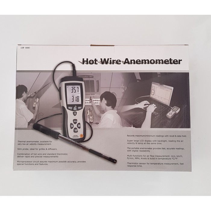 The ARW-8880 hot wire anemometer is particularly suitable for industrial measurement, installation and maintenance of air conditioning, extraction, heating and ventilation systems in general.