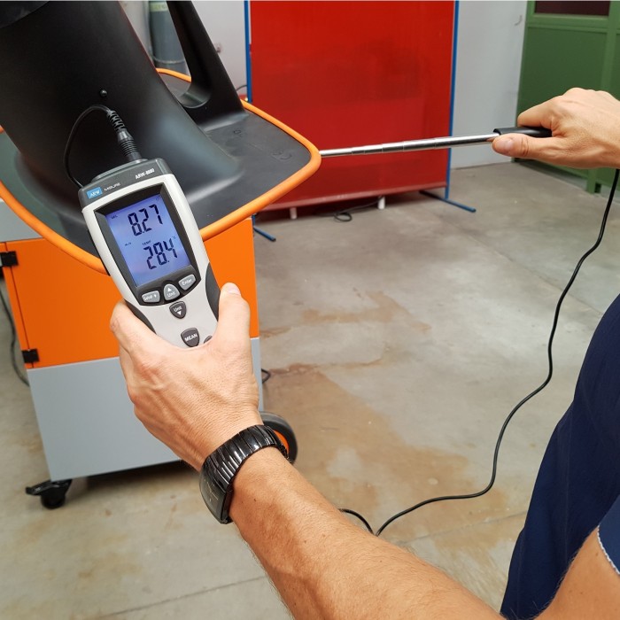 Another important feature is the sensitivity of this measuring principle that allows you to measure the speed of air flows with very low values with a starting point of 0.2m/s, unlike the fan measuring principle which, being a rotary motion, requires a starting point of 0.4-0.5m/s.