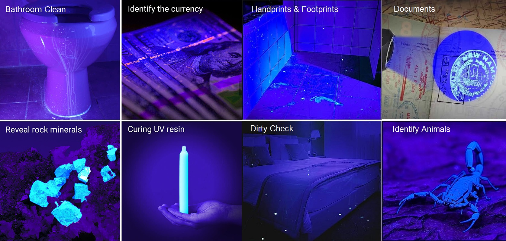 Some typical applications of the ARW-UV180 ultraviolet flashlight: