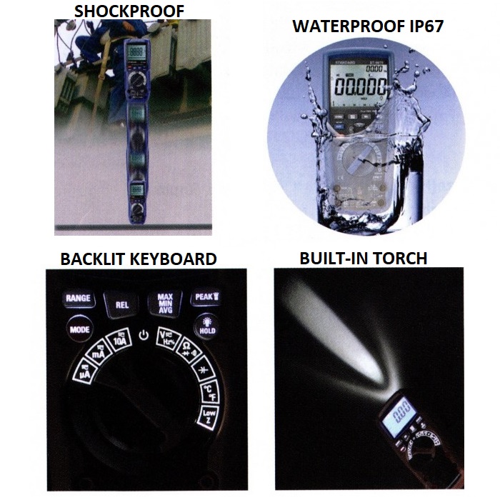 • Equipped with a shock-resistant rubber case with protection degree IP 67