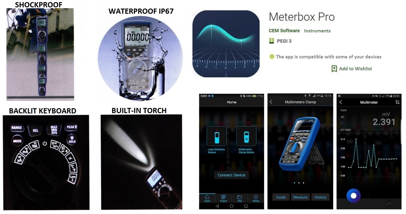 • Bluetooth interface with the "Meterbox Pro" application that can be downloaded for free on your smartphone or tablet (Ios/Android).