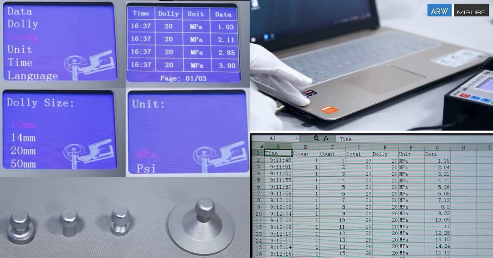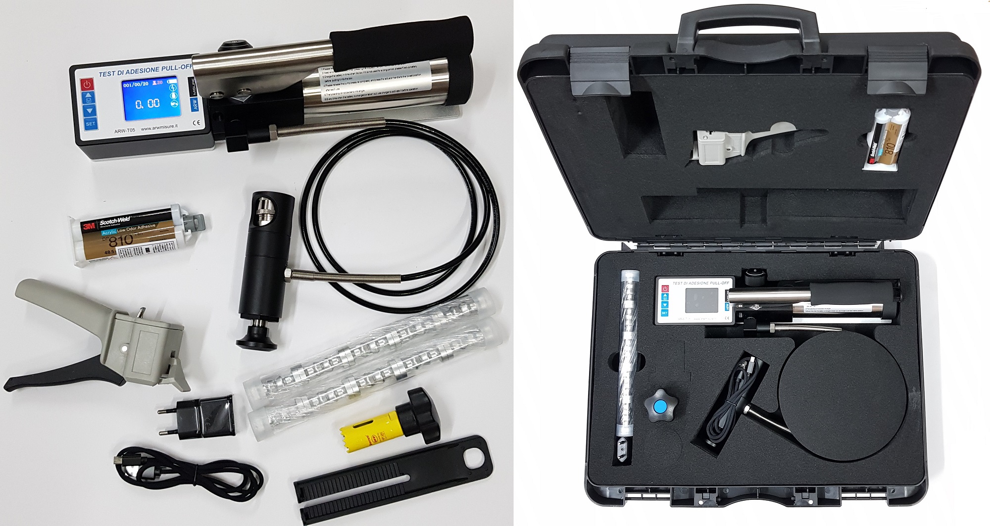 The ARW-T05 pull-off adhesion tester is a hand-operated hand-held tool that is used to measure the force required to extract a specific test diameter of the coating from its substrate using hydraulic pressure. The pressure is displayed on a digital LCD and represents the adhesion strength of the coating to the substrate using the test method according to ISO 4624 specifications.