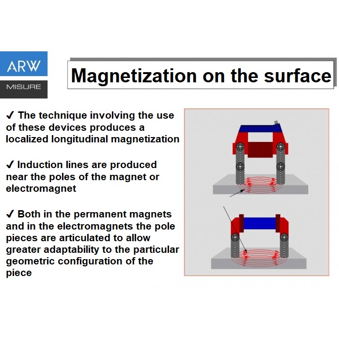 The ARW-H1 permanent magnet yoke for NDT non-destructive testing is a particular instrument that is used for inspections with the magnetic particle magnetoscopic method where there is no connection to the electrical network or for safety reasons.