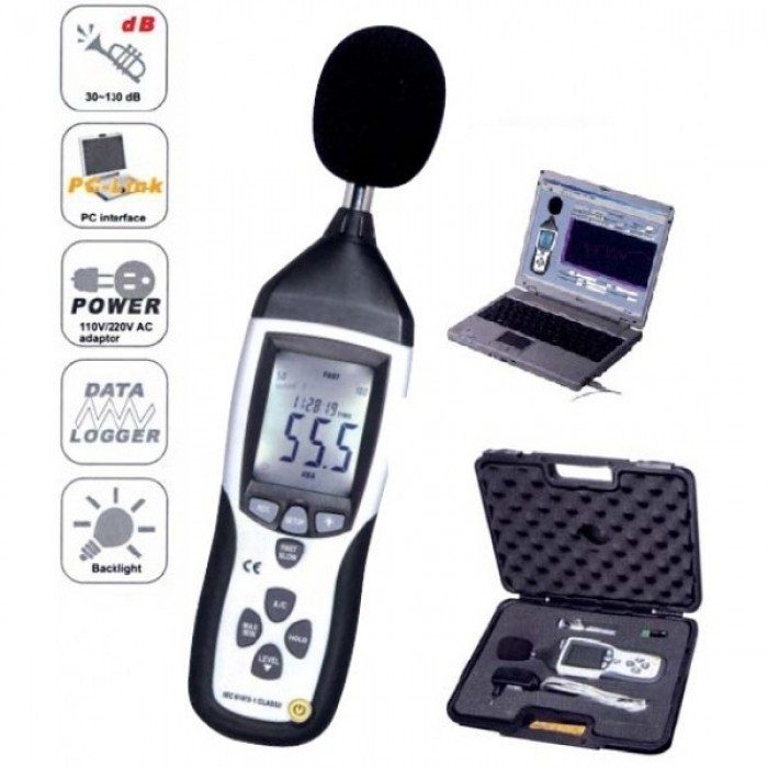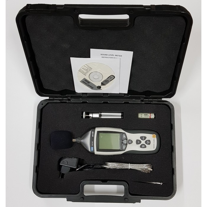 Instant sound level meter “SPL” with data logger function. This feature allows you to make recordings with the choice of the time interval indicated directly on the display and with the relative transfer to a PC using the USB cable and the supplied software.