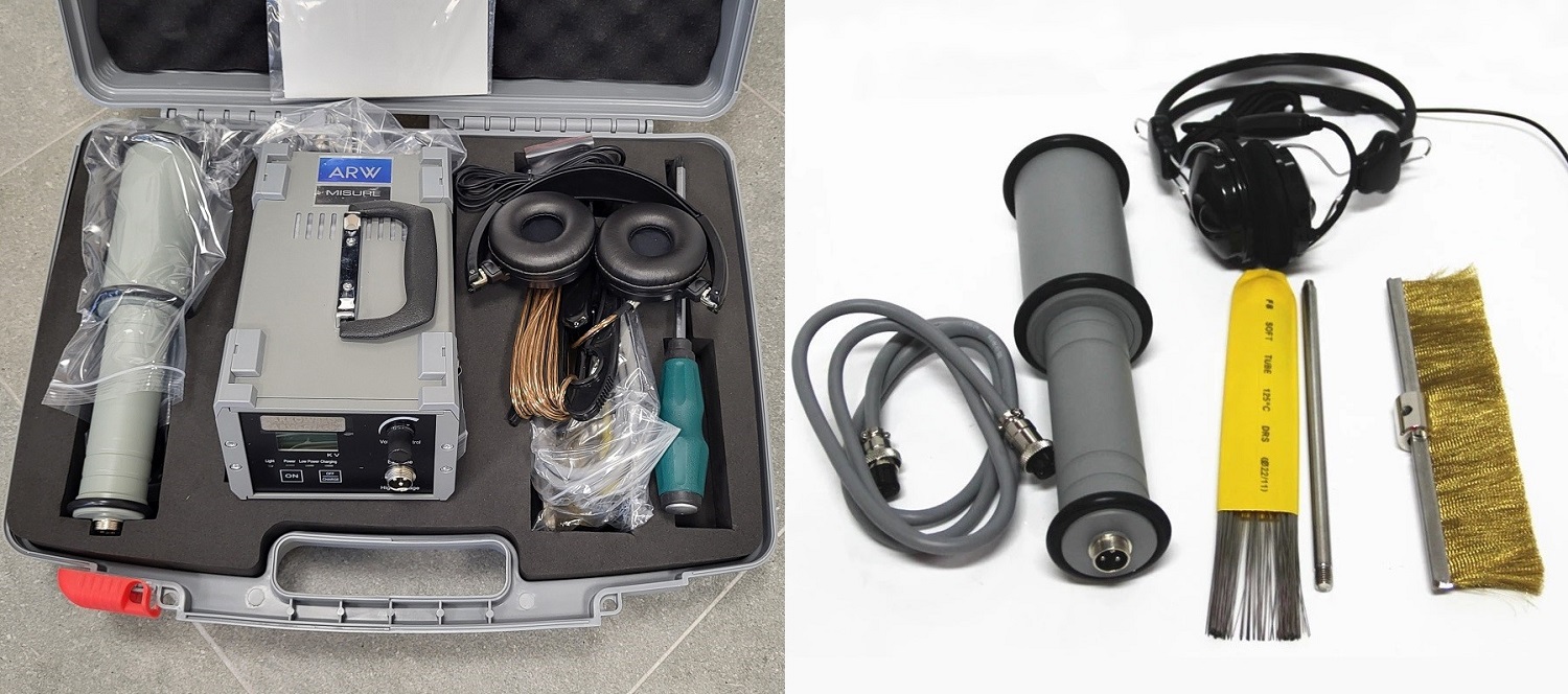 The ARW-DJ Porosity Detector is composed of an instrument body able of supplying a constant and user-adjustable voltage. Through an insulating handle connected to a brush, voltage is transferred to the coated material to be inspected with the aim of verifying any defects, imperfections, porosity or lack of coating present on the surface. If pinholes exist in the protective coating or the coating is too thin, the detector will release a spark and provide an audible signal alerting the operator of the defect found.