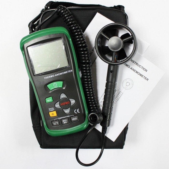 The instrument is equipped with a large backlit display with simultaneous display of speed and temperature with indication of minimum and maximum values and a high sensitivity of m/s speed reading (approx. 0.6 sec.).