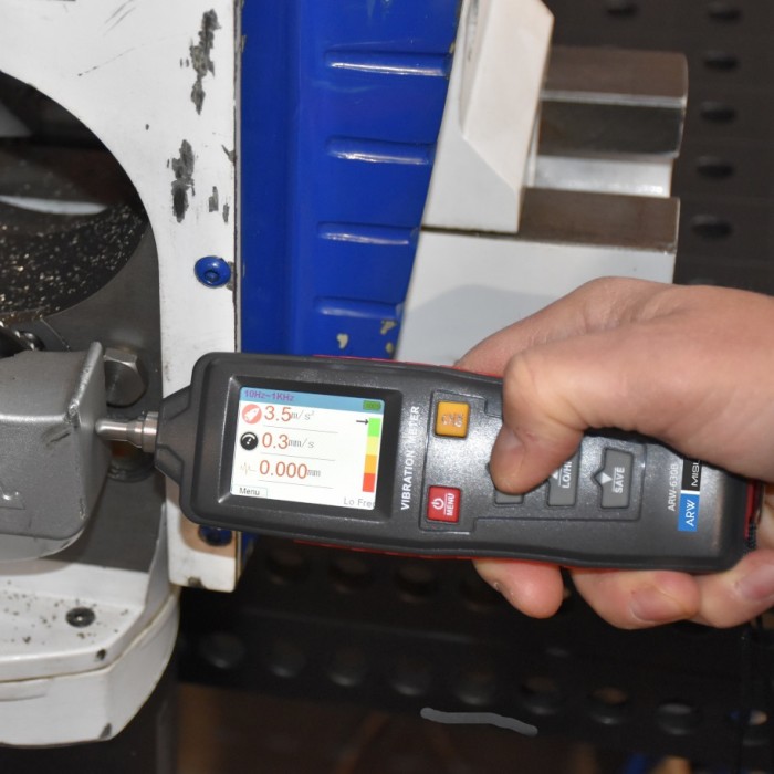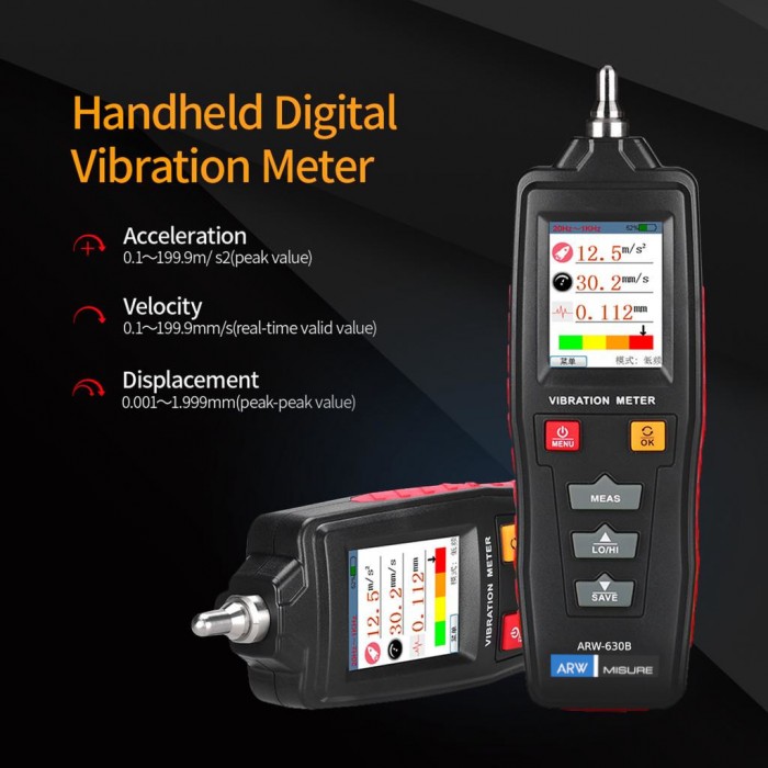 The ARW-630B vibration meter is based on the piezoelectric effect which converts the vibration signal into an electrical signal, then, by analyzing the input signal, the displacement, speed and acceleration values are detected. Equipped with graphic display and data memory with direct visualization on the display.